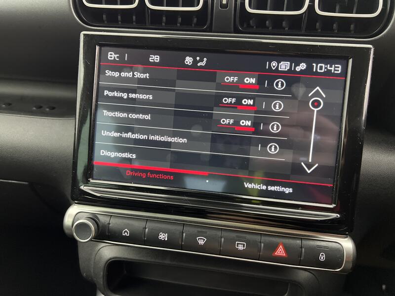 The engine line-up hasn't changed much, so as before, it's broadly shared with its C3 supermini stablemate, though this SUV-orientated model steers clear of the feeblest C3 units. The range starts with a three cylinder turbo petrol 1.2-litre PureTech 110 unit only offered with 6-speed manual transmission. If you want a petrol auto, you'll need the same engine in PureTech 130 guise, which is only offered mated to Citroen's EAT6 auto 'box. This is the latest Euro 6.3-compliant powertrain, which meets the very highest European emission standards. If you want a diesel, there's the usual 1.5-litre BlueHDi 110 unit, mated to 6-speed manual transmission. Ride quality is a little softer than the segment norm - which typical Citroen owners tend to like. This would-be SUV introduced new technologies to the C3 range, including Grip Control with Hill Descent Assist to help in the very unlikely event of an owner being brave enough to take this little Crossover off road. The enhanced traction system claims to provide control and safety even on steep inclines, reducing the risk of slipping or acceleration as the vehicle descends in forward or reverse gear.